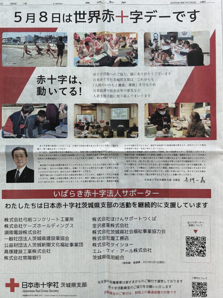 弊社はいばらき赤十字法人サポーターのゴールドサポーターとして継続的に支援させていただいております。